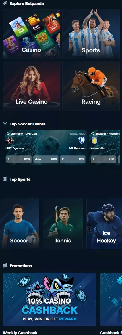 Explore a programação épica de jogos da Betpanda. Jogadores brasileiros encontram uma enorme seleção de esportes e opções de cassino na Betpanda. De eventos mundiais a jogos locais, aproveite odds altas, inúmeras apostas e uma emocionante seção ao vivo!